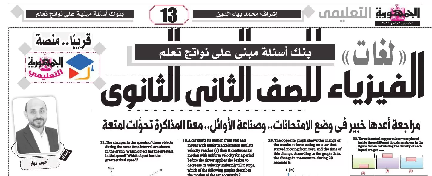 & Free Shippingملحق الجمهورية التعليمي, الفيزياء لغات – للصف الثانى الثانوى – 8 يناير 2026