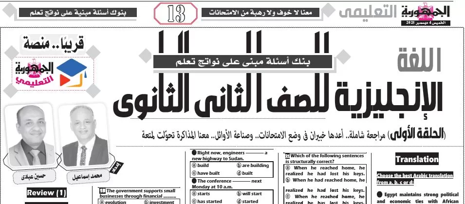 ملحق الجمهورية التعليمي, اللغة الإنجليزية – للصف الثانى الثانوى – 4 ديسمبر 2025