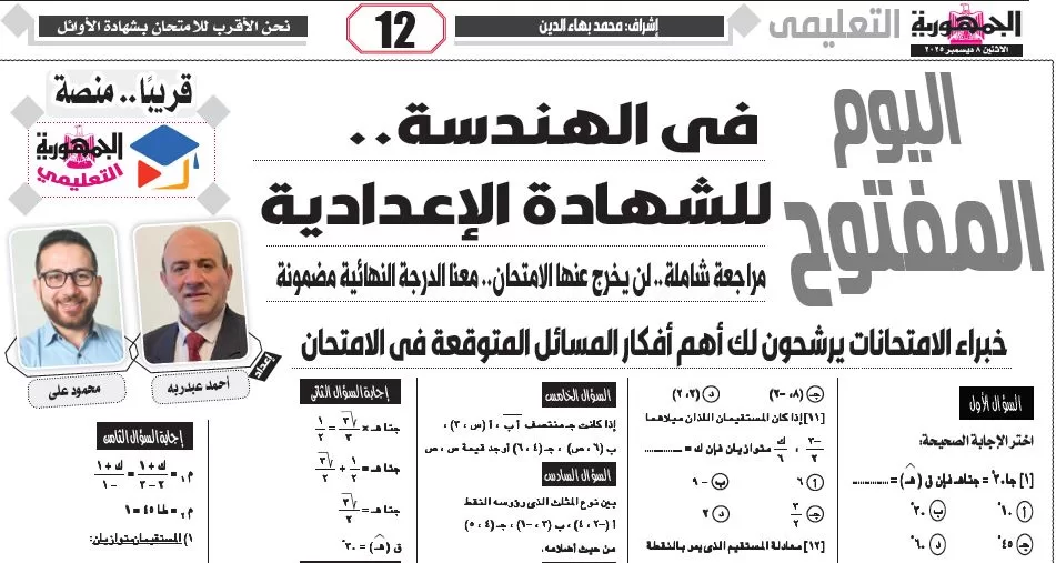 ملحق الجمهورية التعليمي, الهندسة – للشهادة الإعدادية – 8 ديسمبر 2025