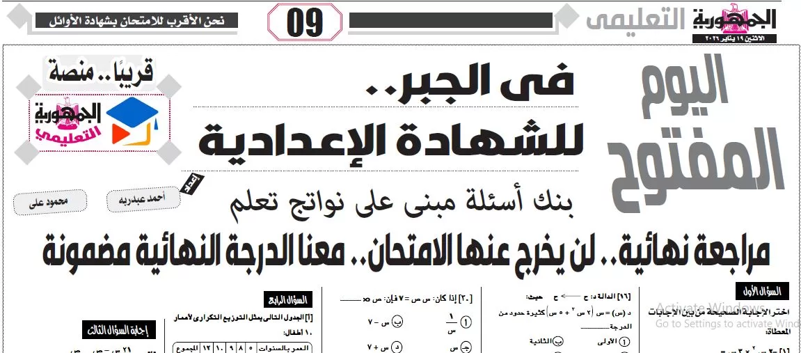 ملحق الجمهورية التعليمي, جبر – للشهادة الاعدادية – 19 يناير 2026