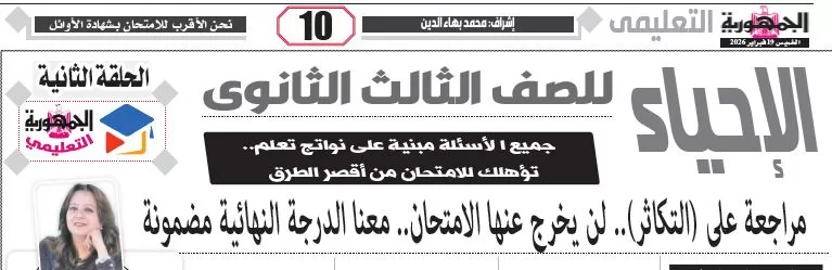 ملحق الجمهورية التعليمي, مراجعة احياء – للصف الثالث الثانوى – 19 فبراير 2026