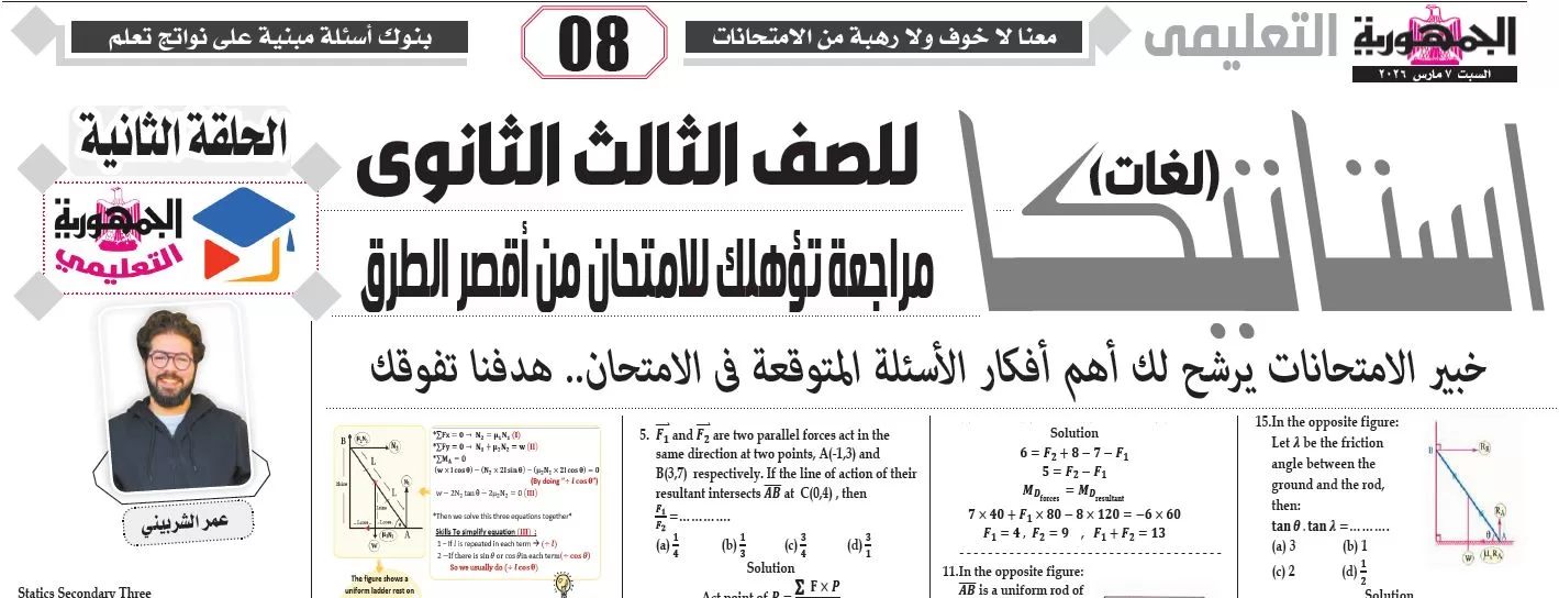 & Free Shippingملحق الجمهورية التعليمي, مراجعة استاتيكا لغات – للصف الثالث الثانوى – 7 مارس 2026