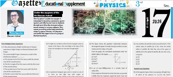 ملحق الجازيت التعليمي, Physics 3 Sec 5 – 4 -2026