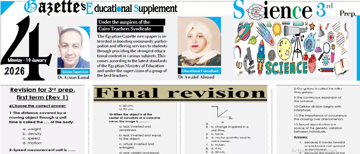 ملحق الجازيت التعليمي, science 3 Prep 19 -1-2026